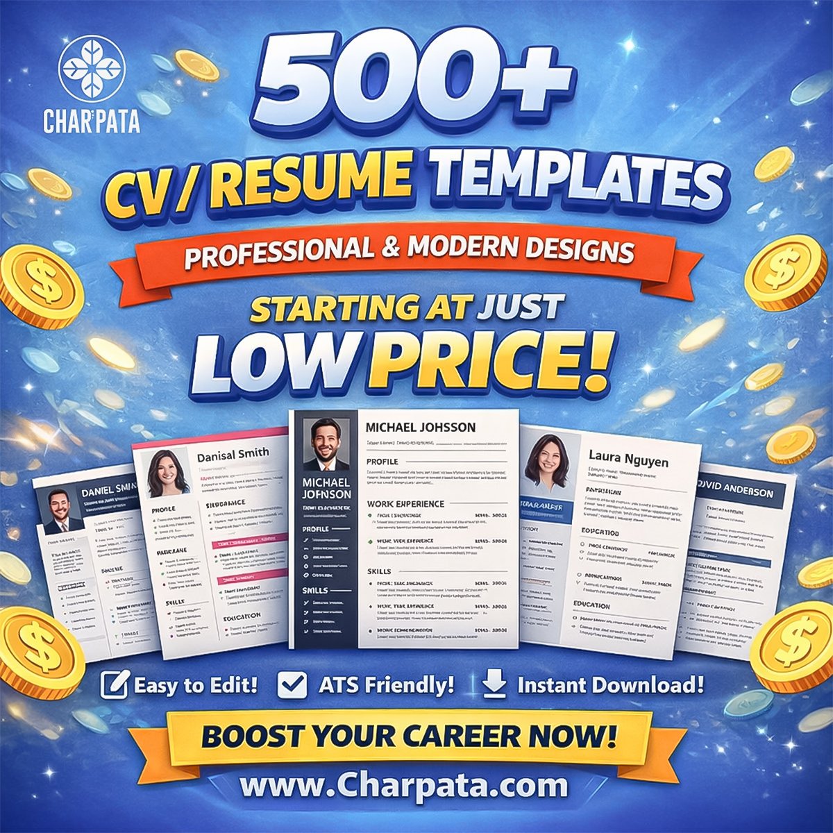 Charpata নিয়ে এসেছে 500+ Premium CV / Resume Templates Bundle — এখন একসাথে পাচ্ছেন: