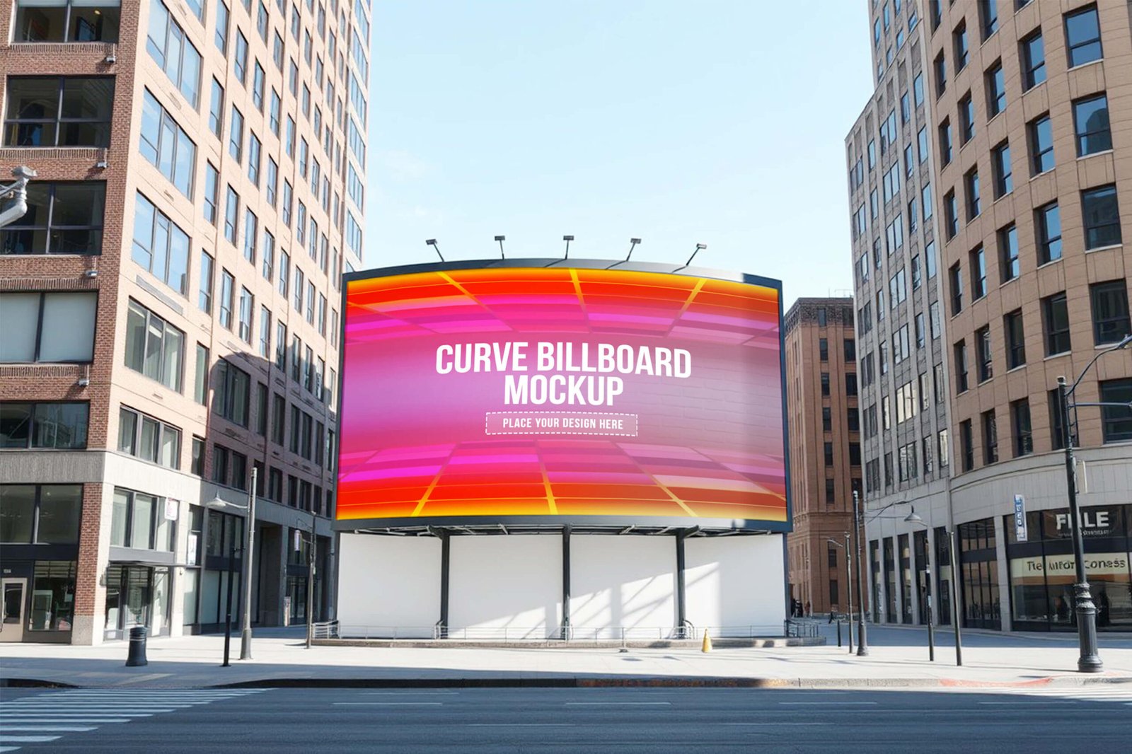 Curve Billboard Mockup On a Building PSD 9
