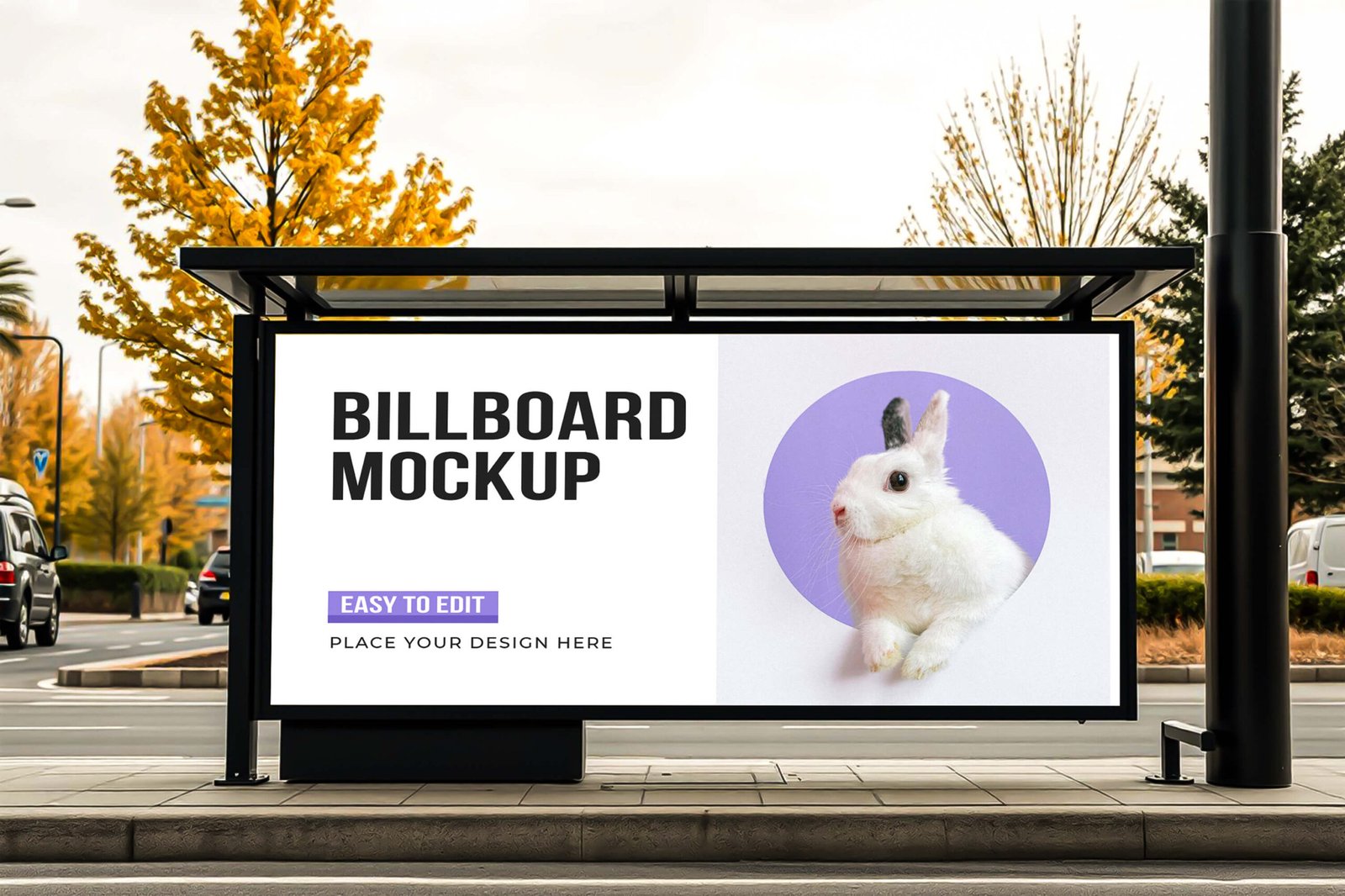 Bus Stop Billboard, Outdoor Bus Stop Shelter Advertisement Mockup